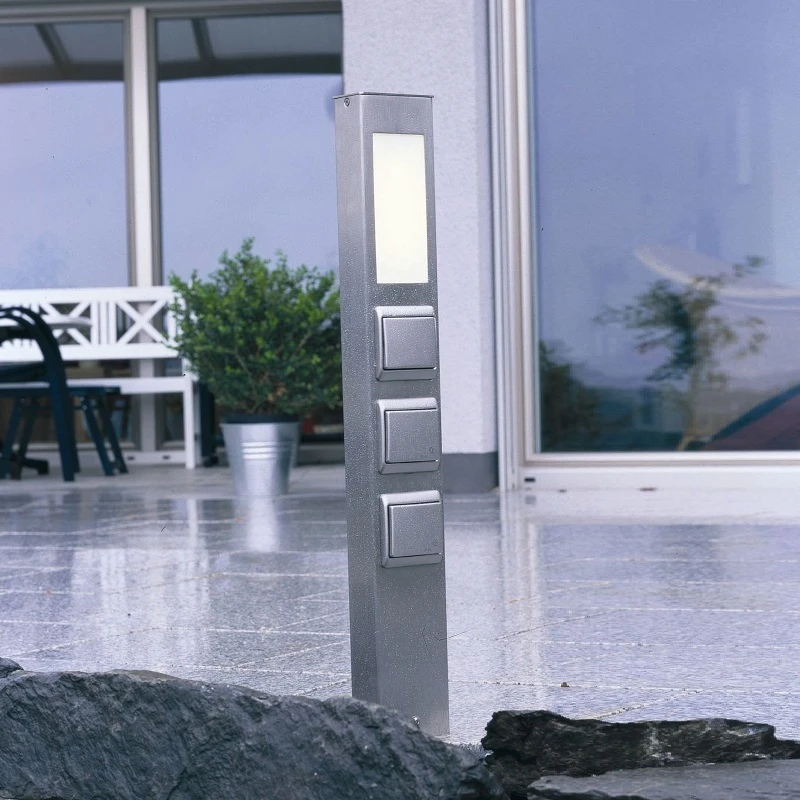 Universelle Lichtsäule mit 2 Steckdosen und 1 Ein- und Ausschalter für den Aussenbereich.