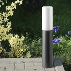 Schlank, schick und elegant wirkt diese Wegeleuchte. Diese moderne Pollerleuchte aus pulverbeschichtetem anthrazitfarbenen Aluminium hat ein rundes Opalglas mit Gewinde und wird Ihren Weg zur Haustür ausleuchten.