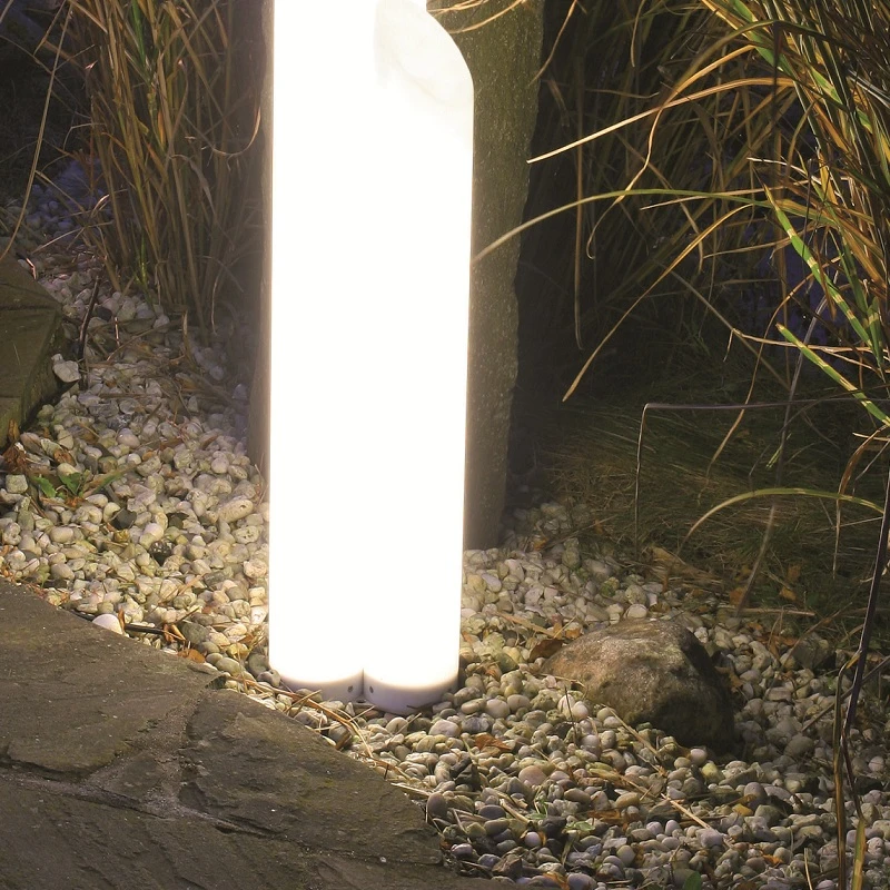 Sanfter angenehm blendfreier Lichtschein sorgt für eine entspannte Lichtstimmung im gesamten Außenbereich. Beleuchtet werden die Säulen von Leuchtstoffröhren, wodurch der Kunststoff besonders gleichmäßig ausgeleuchtet wird. Es befinden sich keine Leuchtmittel im Lieferumfang. So dürfen Sie selbst wählen in welcher Lichtfarbe Ihre Säule strahlen darf.