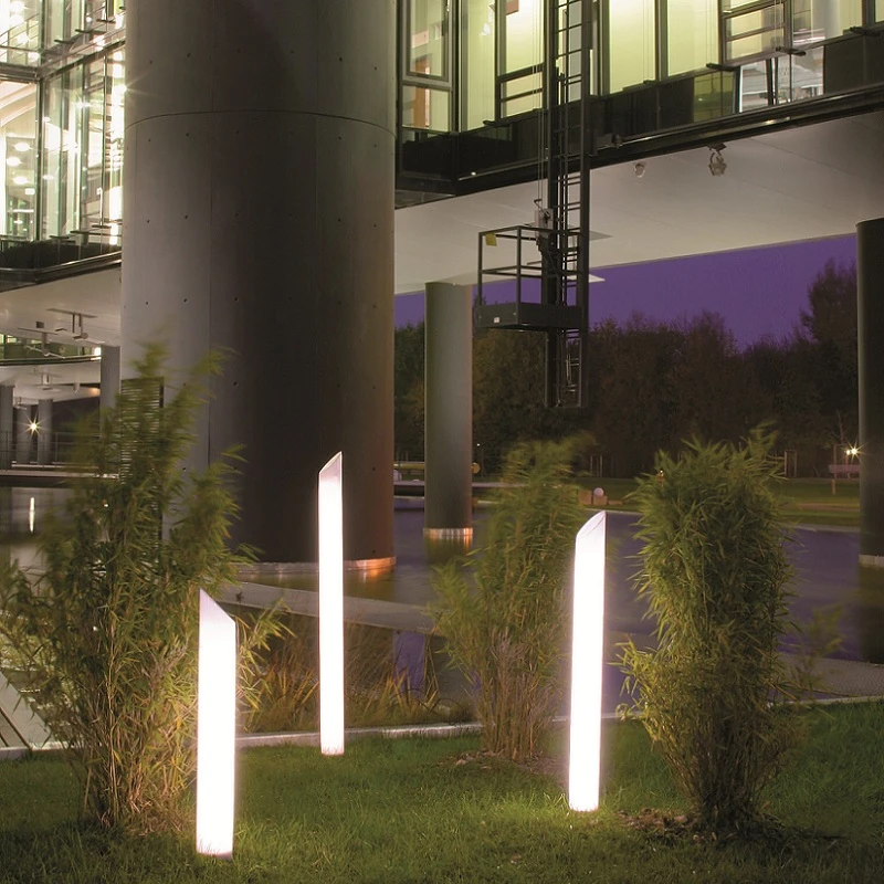 Modernes Design von Lichtgefüllt. Aus hochwertigem Kunststoff auf den der deutsche Lieferant eine UV-Beständigkeit von bis zu 10 Jahren gewährt wurde hier zu einem Rohr mit abgeschrägter Spitze geformt.
