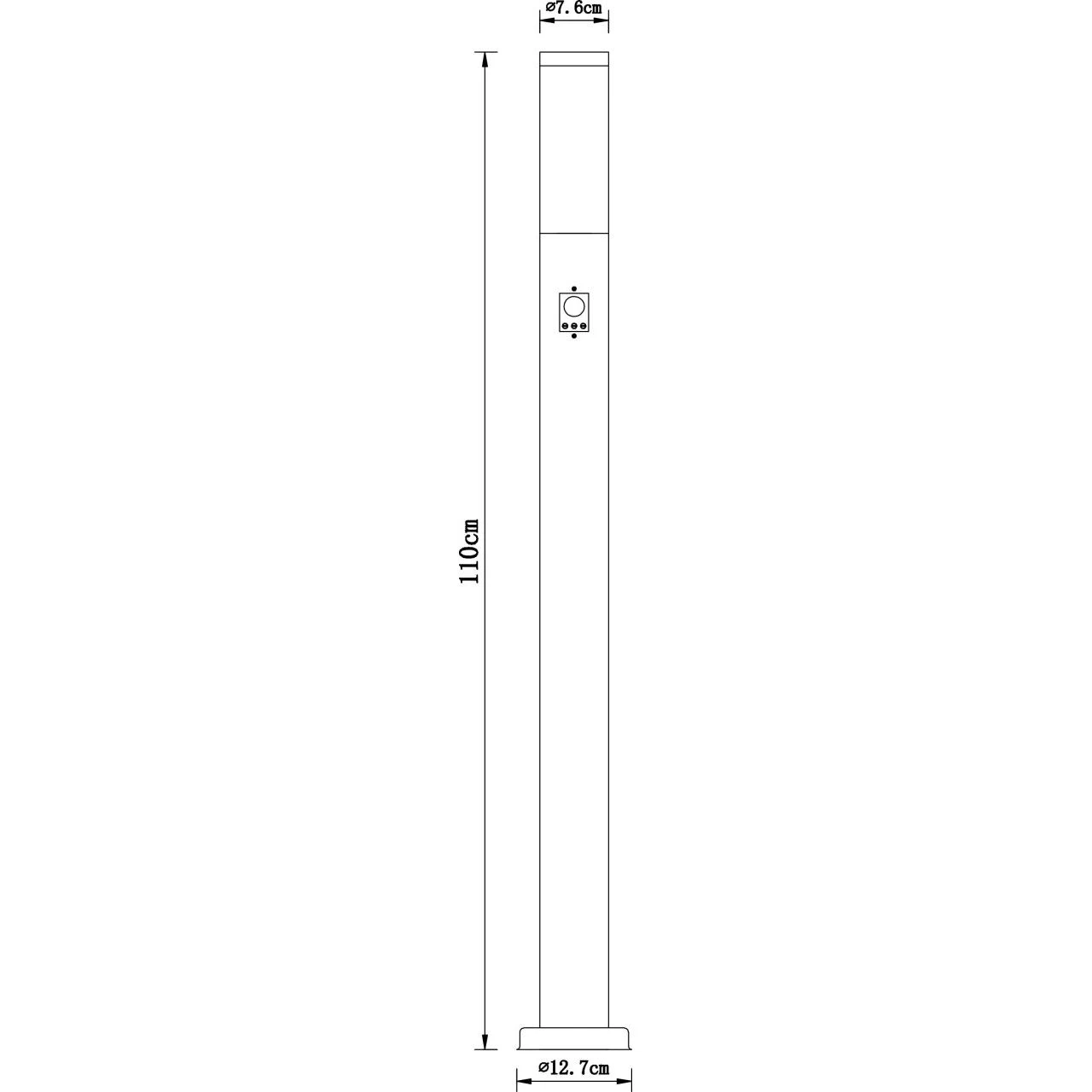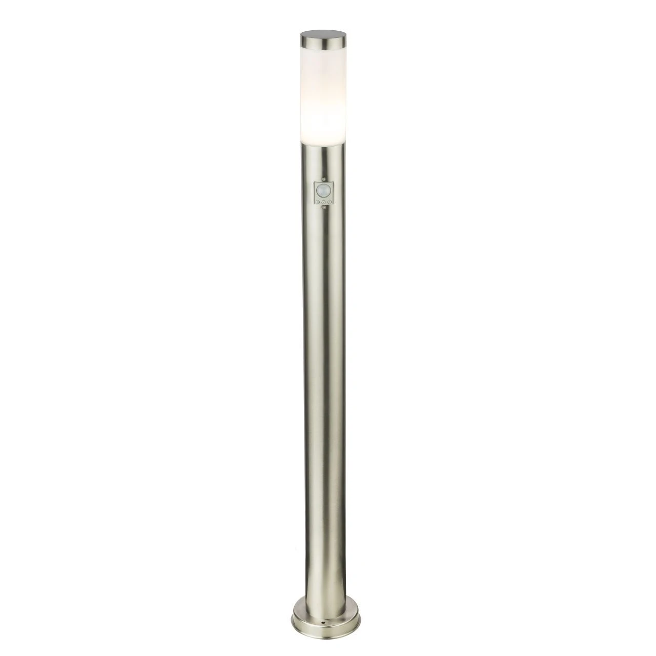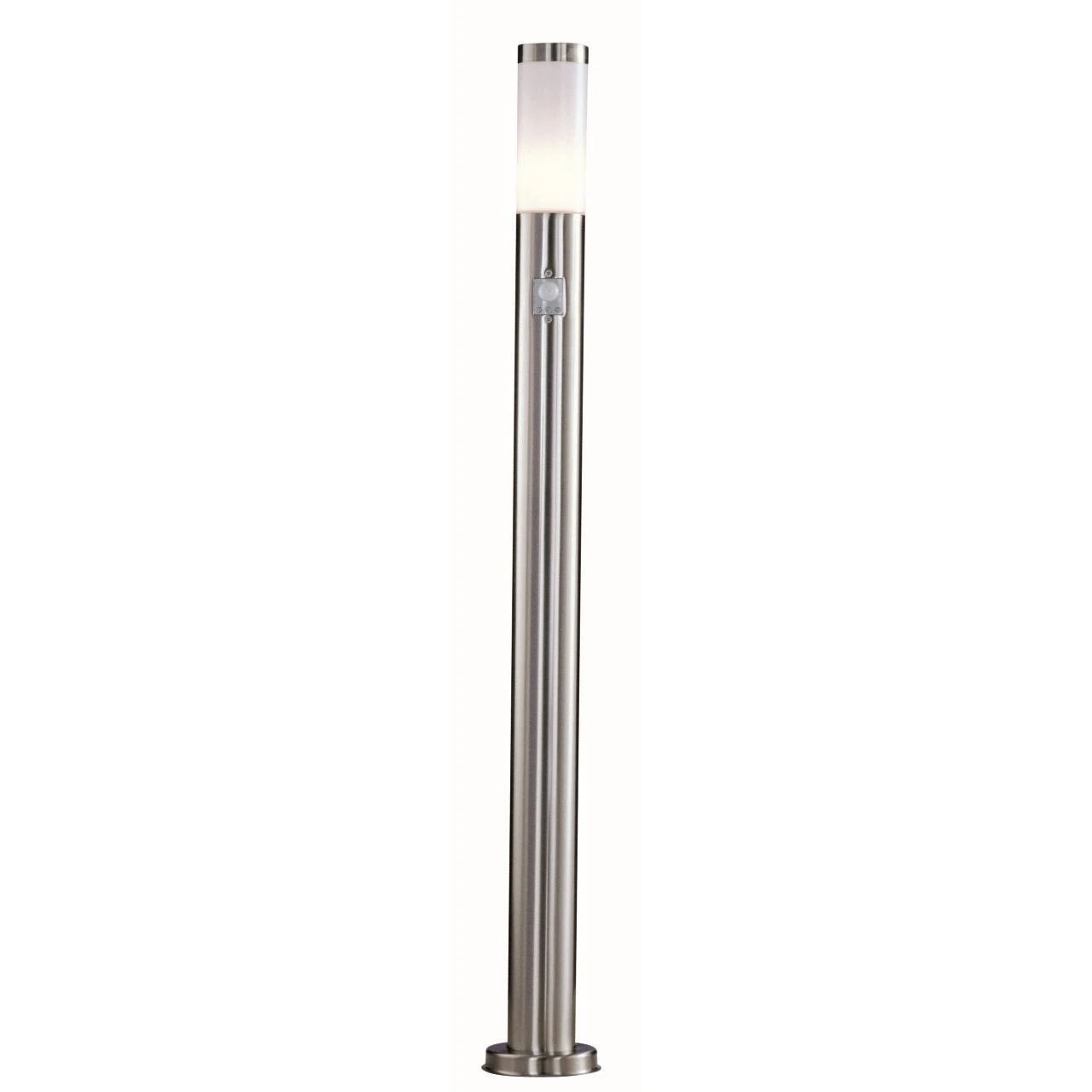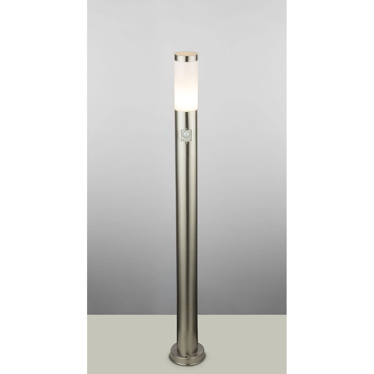 Diese elegante Sockellampe zeichnet sich durch ihr stilvolles Design und die tolle Verarbeitung aus. Die formschöne Außenlampe ist aufgrund ihrer Schutzart IP44 bestens für den Außenbereich geeignet. Dieses Modell ist aus Edelstahl und opalem Kunststoff gefertigt und hat eine Gesamtgröße von 1,1 Meter. Die Lampe ist mit einer E27 Fassung ausgestattet und ermöglicht Ihnen ein Leuchtmittel (max. 60W) Ihrer Wahl zu nutzen. Auf Grund ihrer Stromersparnis und Langlebigkeit empfehlen wir LED-Lampen. Ein zusätlzlicher Pluspunkt ist der integrierte Bewegungsmelder (90 °) mit einer Reichweite von bis zu 9 Meter. Mit weiteren Sockellampen und Wandlampen der gleichen Produktserie kann man das Bild komplettieren.