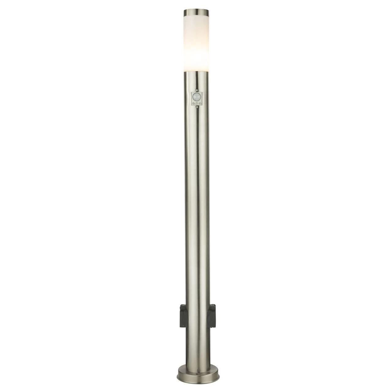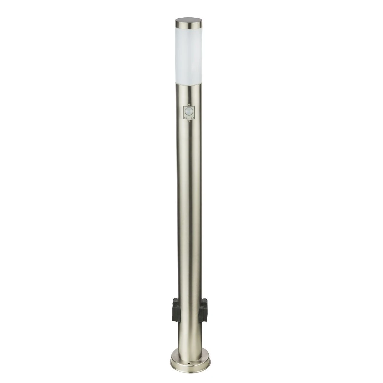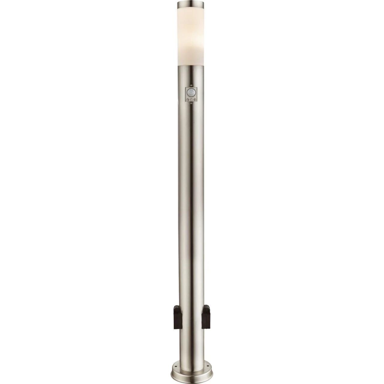 Diese elegante Sockellampe, aus I, besitzt 2 Steckdosen im Sockel, sowie einen Bewegungsmelder (8 Meter / 90 °) mit 3 unterschiedlichen Einstellungen. Außerdem ist die moderne Außenlampe mit der Schutzart IP44 ausgestattet, wodurch sie sich ideal für den Außenbereich eignet. Die Helligkeit der 1,10 Meter großen Edelstahllampe kann nach Belieben mit Leuchtmittel, für E27 geeignete Fassungen, selbst bestimmt werden. Mit weiteren kleineren Sockellampen dieser Produktserie kann man das Bild komplettieren.