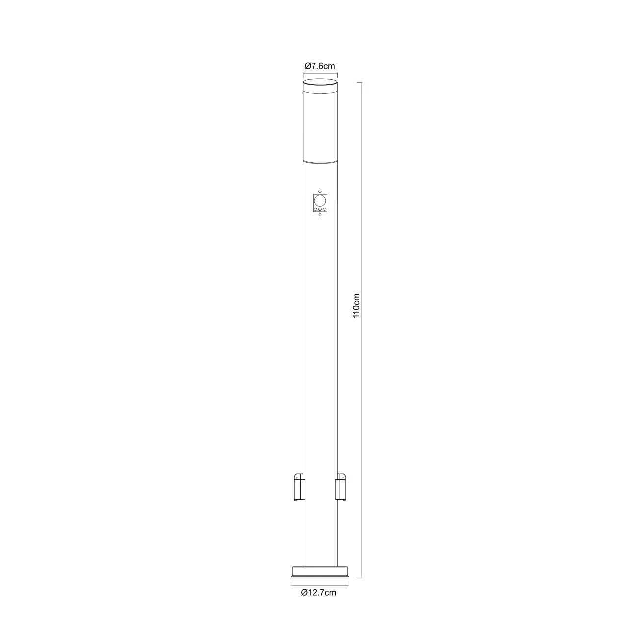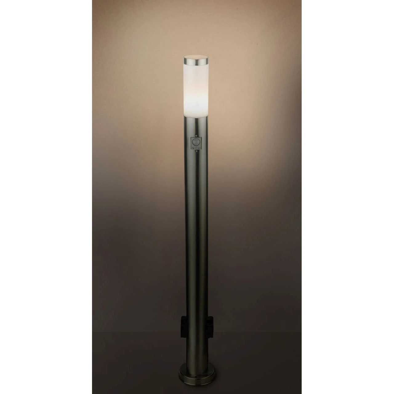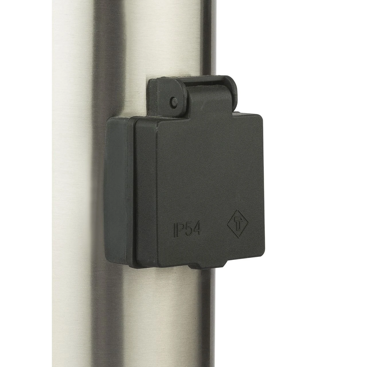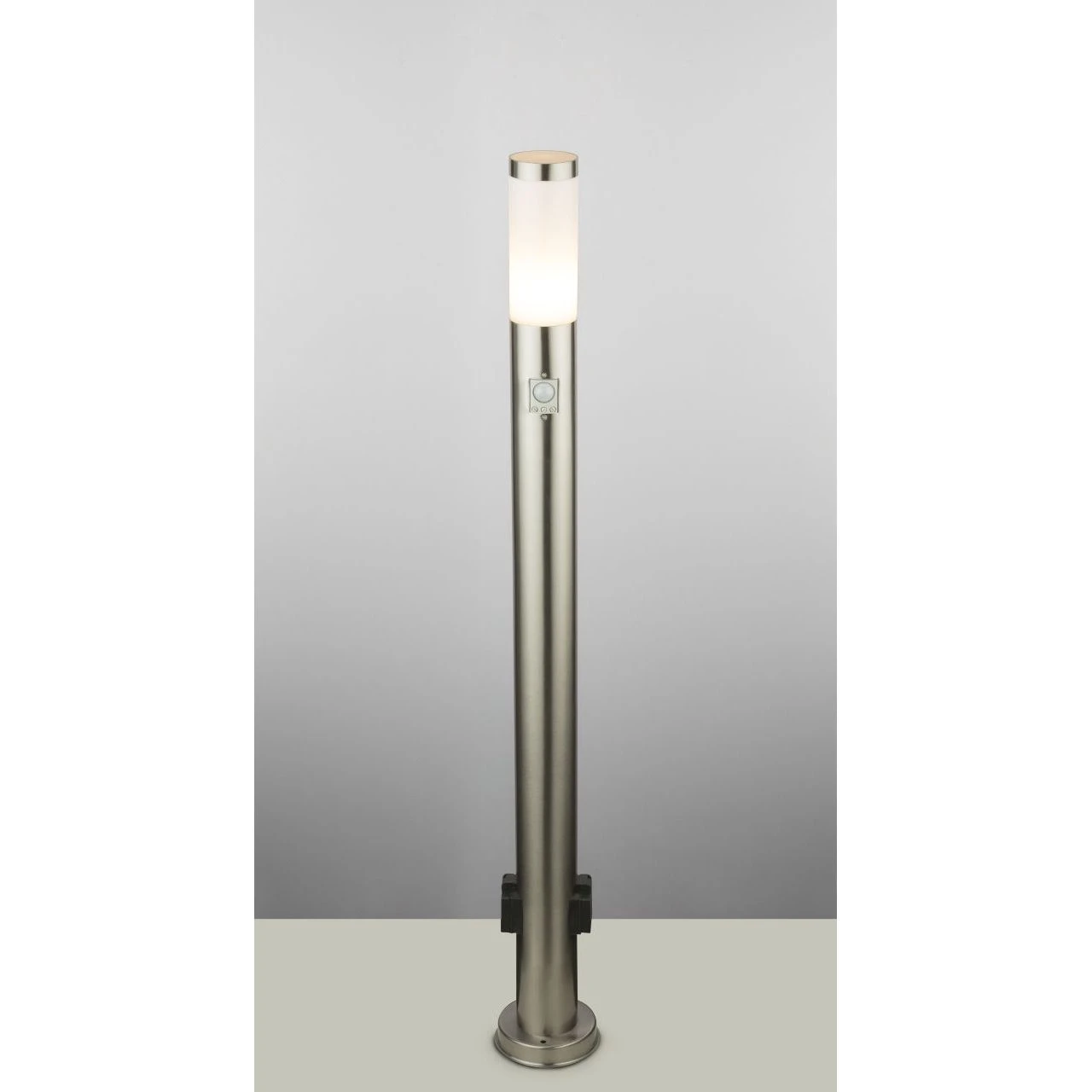 Diese elegante Sockellampe, aus I, besitzt 2 Steckdosen im Sockel, sowie einen Bewegungsmelder (8 Meter / 90 °) mit 3 unterschiedlichen Einstellungen. Außerdem ist die moderne Außenlampe mit der Schutzart IP44 ausgestattet, wodurch sie sich ideal für den Außenbereich eignet. Die Helligkeit der 1,10 Meter großen Edelstahllampe kann nach Belieben mit Leuchtmittel, für E27 geeignete Fassungen, selbst bestimmt werden. Mit weiteren kleineren Sockellampen dieser Produktserie kann man das Bild komplettieren.