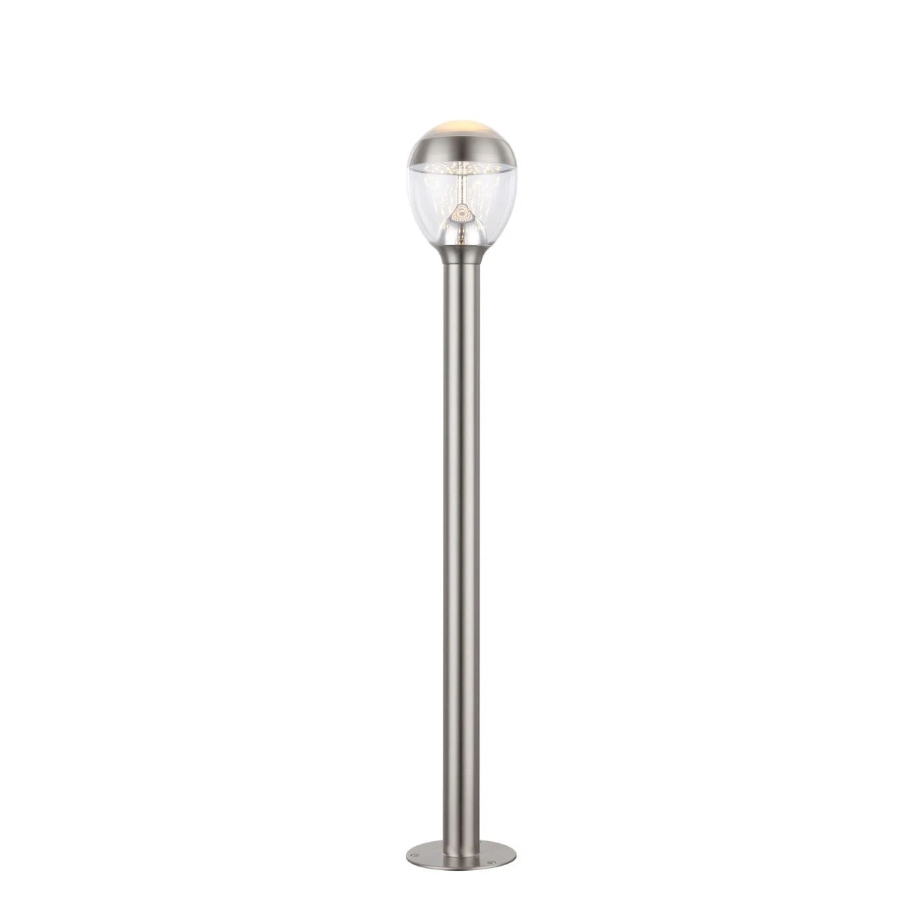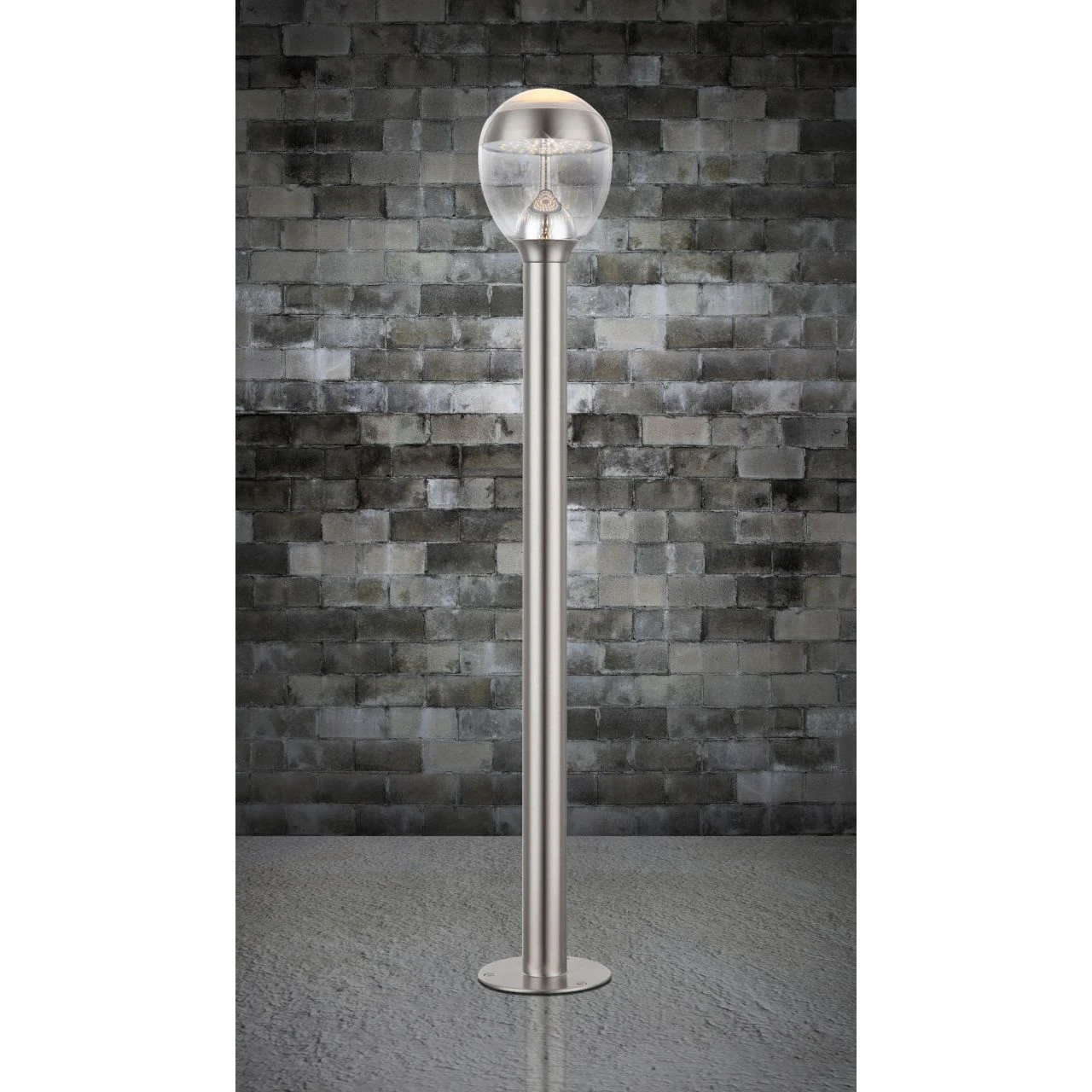Diese Außenleuchte aus Edelstahl und klaren sowie satiniertem Kunststoff gefertigt, eignet sich besonders gut zur Beleuchtung (750 Lumen) von Wegen und Einfahrten. Gerade bei längeren Wegen wirkt es sehr schön, wenn Sie mehrere dieser Leuchten aufstellen. Aber natürlich können Sie die Leuchten auch entlang des Hauses aufstellen oder vereinzelt am Grundstück um Highlights zu setzen. Mit Ihrer IP44 Schutzart eignet sich diese knapp 1 Meter große Sockellampe hervorragend für den Außenbereich.