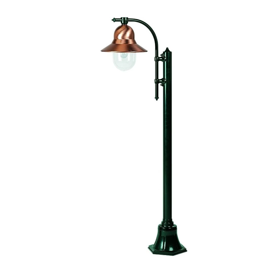 Die nostalgische Leuchte ist aus Aluminiumguss und Kupfer gefertigt. Das klare Acrylglasglas garantiert optimales Licht und eine gute Ausleuchtung Ihres Grundstücks. Hohe Qualität und solide Verarbeitung versprechen eine lange Lebensdauer.
