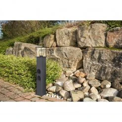Heitronic eckige Sockelleuchte mit Steckdosen pulverbeschichtet anthrazit IP44 15 x 12,2 x 70 cm