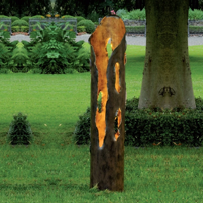 Diese Gartenleuchte von Robers besticht durch ein ausgefallenes Erscheinungsbild, mit dem sie die Blicke auf sich zieht. Gut erkennbar zeichnet sich die hochwertige Handarbeit ab, die dieses Kunstwerk aus solidem Schmiedeeisen hat entstehen lassen. Außen wurde die Beetleuchte mit einer Patina-Lackierung veredelt.