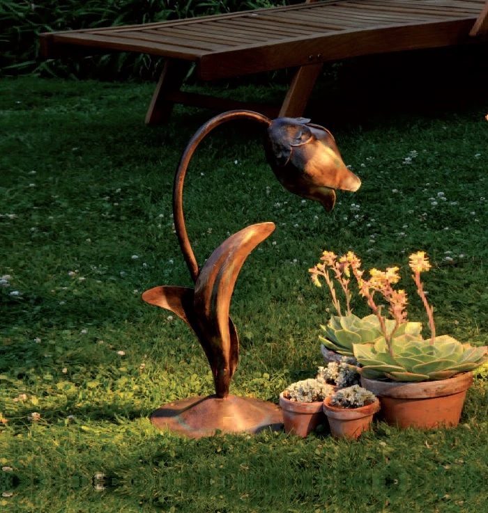 Liebevolle Details und hochwertige Materialien prägen die meisterlichen Außenleuchten von Robers Leuchten Das nach unten gerichtete Licht beleuchtet Beete und Wege gezielt akzentvoll.