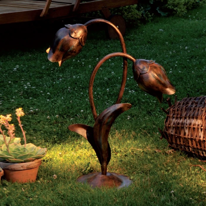 Handgefertigte Wegeleuchte, Beetleuchte in Blütenform, Außenleuchte aus Schmiedeeisen